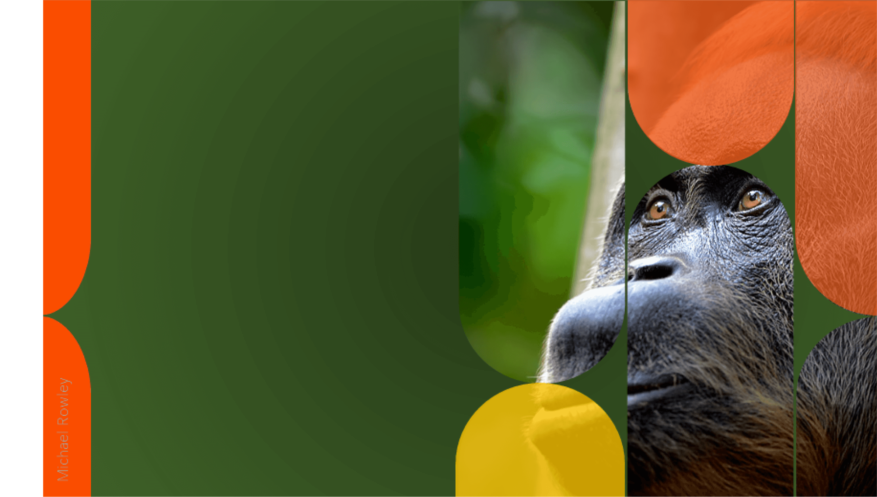 Imagery: Use high-quality images of orangutans in their natural habitat. Considering incorporating illustrations to add a playful touch, leaves , branches, trees etc