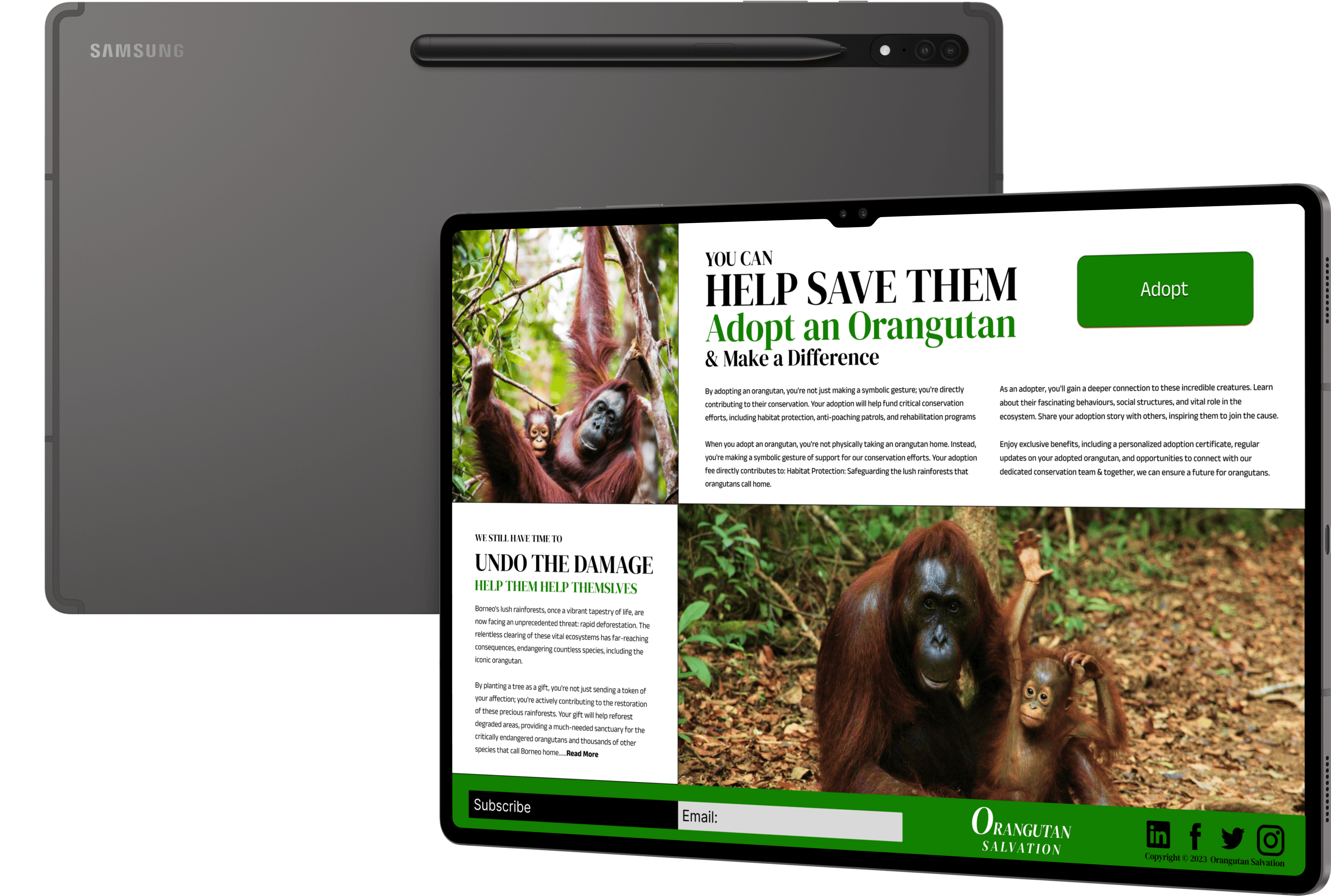 By engaging users on an emotional level, the aim is to motivate the user to support the mission and become active advocates for Orangutan Salvation.
