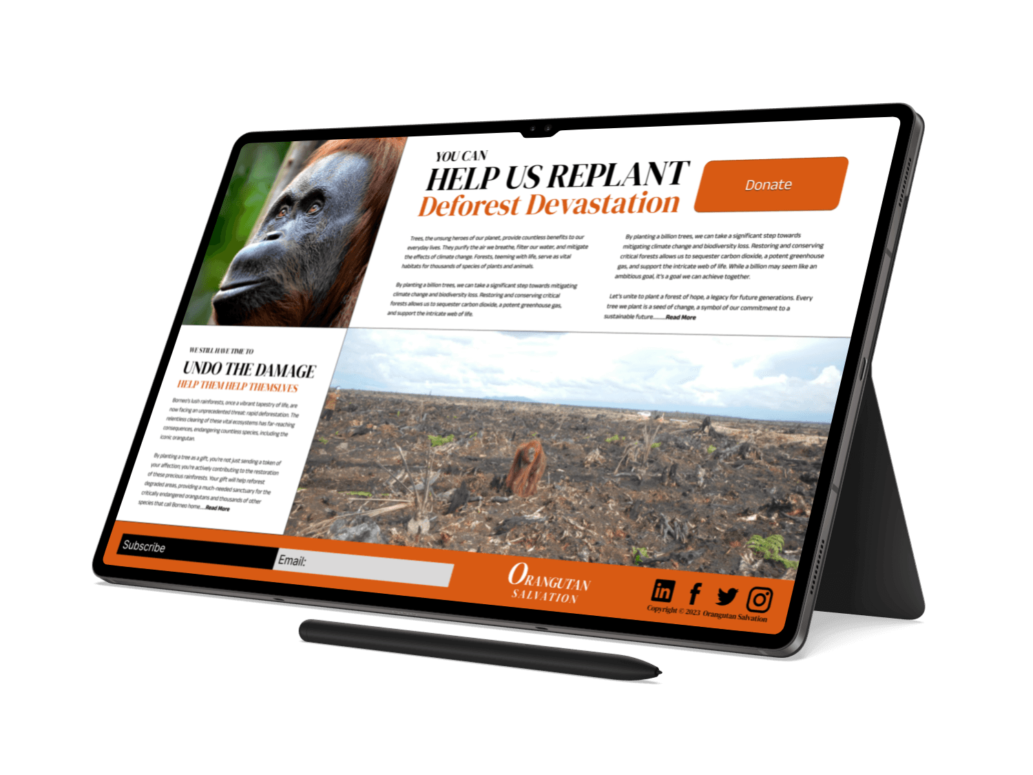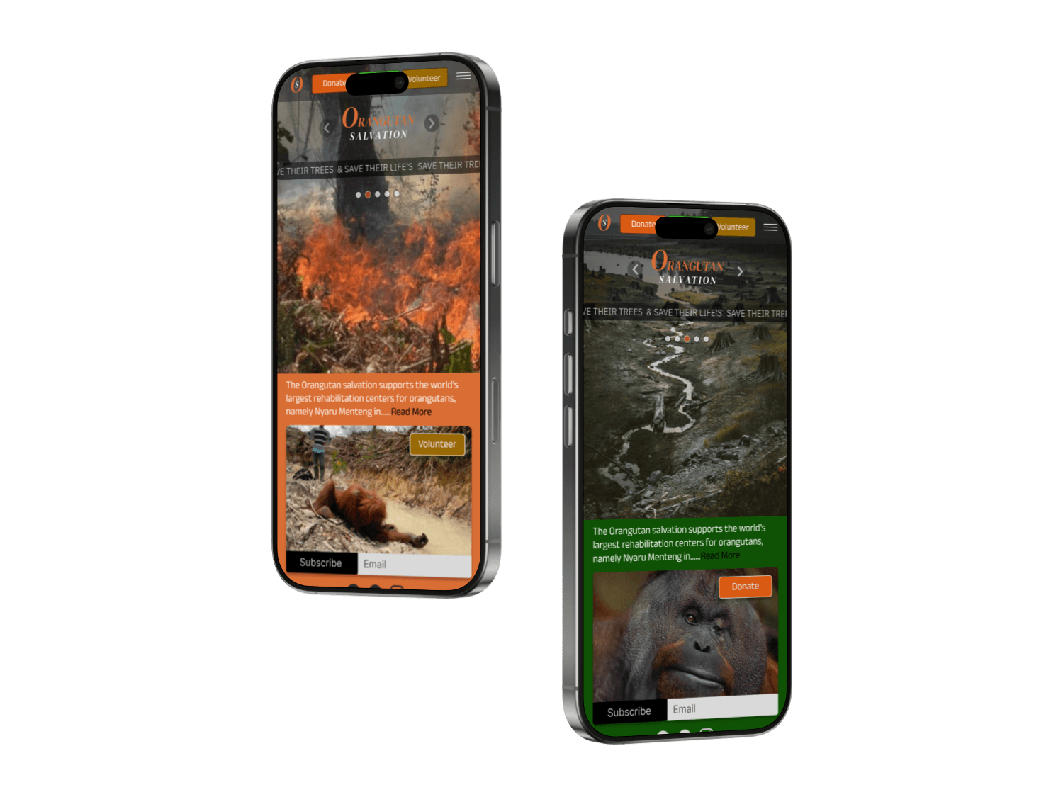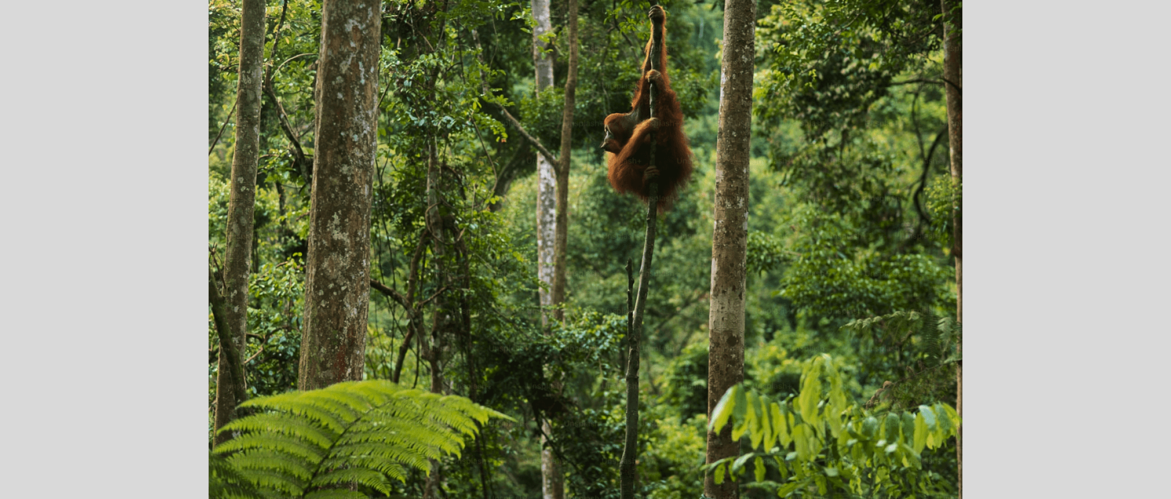 Over five impactful screens, we will visually narrate the heartbreaking reality of deforestation, habitat loss, and the declining orangutan population.